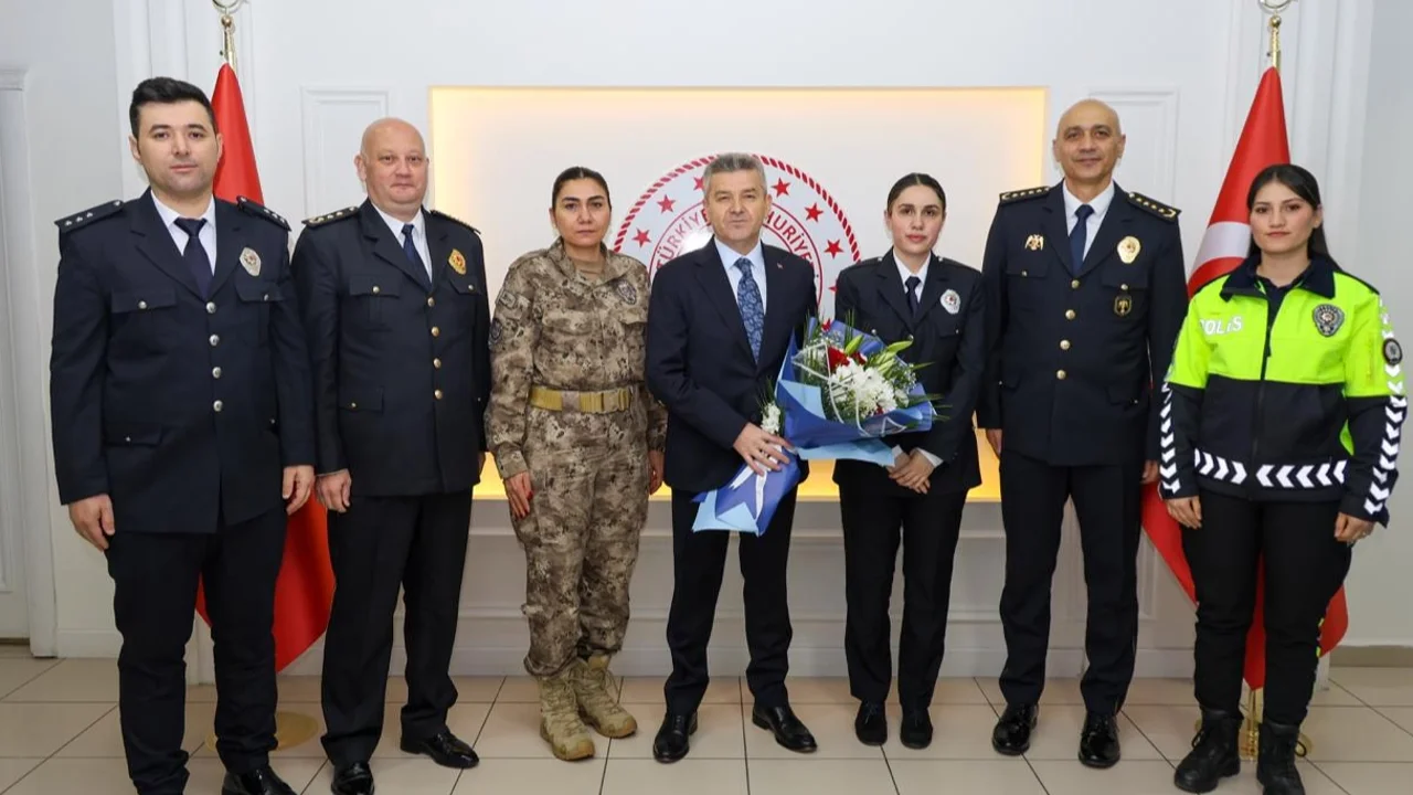 Artvin Valisi Turan Ergün, 10 Nisan Türk Polis Teşkilatı'nın kuruluşunun 181. kuruluş yıl dönümü ve 'Polis Haftası' dolayısıyla Artvin İl Emniyet Müdürü Murat Güneş ve teşkilat mensuplarını kabul etti.