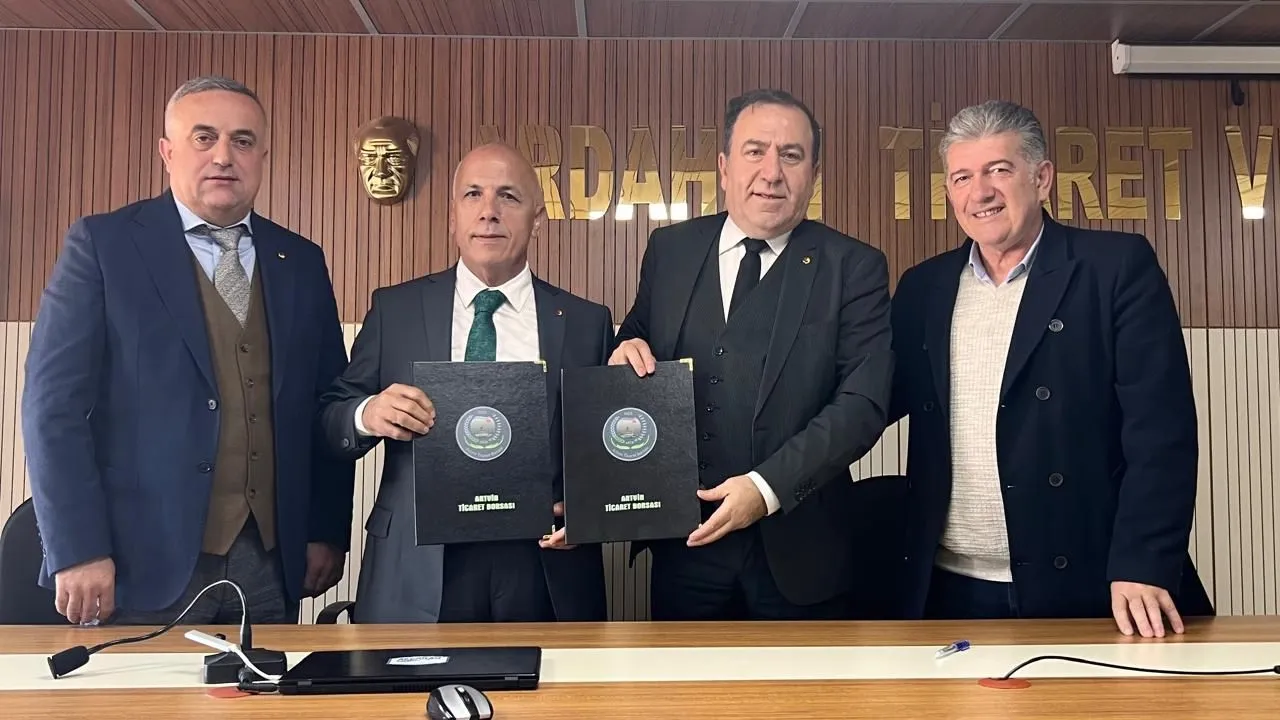 Bayram SARAYOĞLU / ARTVİN (İGFA) - Protokol, Artvin Ticaret Borsası Yönetim Kurulu Başkanı Osman Akyürek ile Ardahan Ticaret ve Sanayi Odası Yönetim Kurulu Başkanı Çetin Demirci tarafından 22 Ekim 2025 tarihinde imzalanarak resmiyet kazandı.