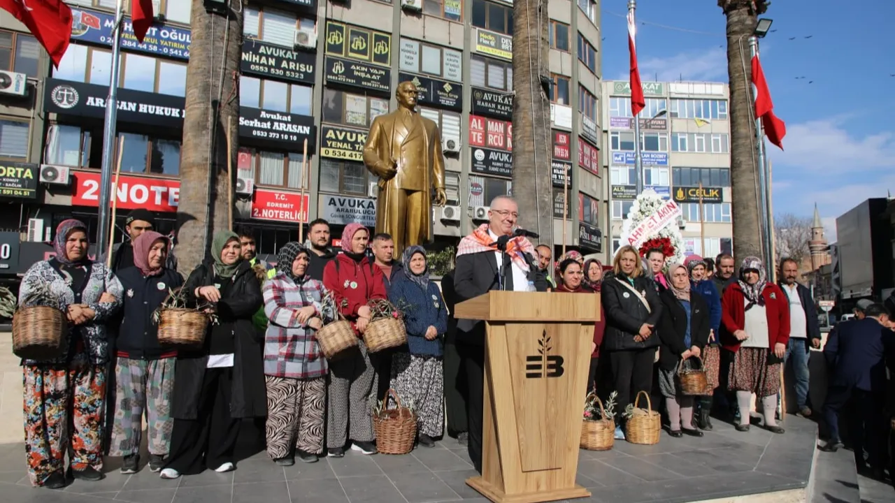 Zeytinin Edremit'te hayatın merkezinde yer aldığını ifade eden Başkan Ertaş, 'Zeytin, bizler için sadece sofralarımızda yer alan bir ürün değildir. Çocuklarımızın geleceği, evlerimizin bereketi, umutlarımızın teminatıdır. Hasat zamanına göre düğünlerimizi planlar, yapacağımız her harcamayı zeytinden elde edeceğimiz gelire göre hesaplarız. Kısacası zeytin, Edremit'te emeğin, alın terinin ve geleceğin adıdır' dedi.