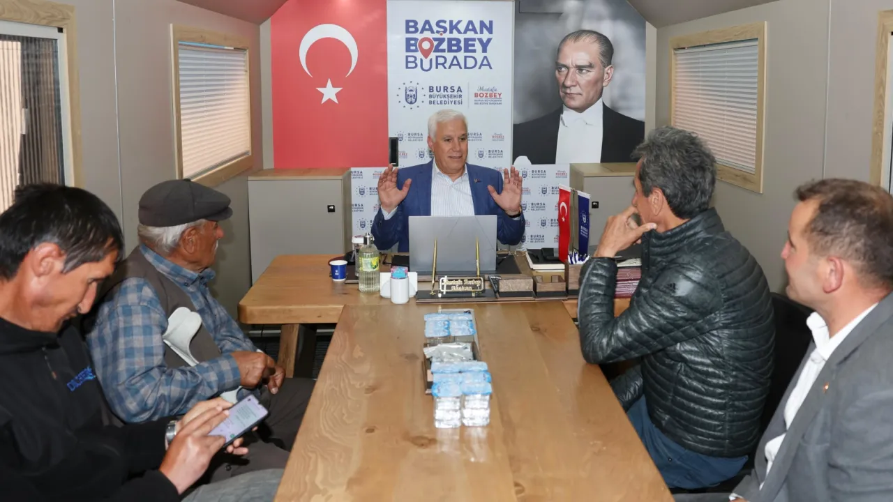 ‘Başkan Bozbey Burada’ projesi kapsamında Büyükorhan ilçesinde yerel yöneticiler, muhtarlar ve vatandaşlarla bir araya gelen Bursa Büyükşehir Belediye Başkanı Mustafa Bozbey, dağ yöresinin gelişmesini ve gençlerin mutlu bir şekilde bölgede yaşamasını arzuladıklarını belirterek, "Dağ yöresi turizmle ve doğayı kirletmeyen işletmelerle kalkınacak" dedi.BURSA (İGFA) - Bursa Büyükşehir Belediye Başkanı Mustafa Bozbey, vatandaşların talep ve önerilerini dinlemek, sorunları yerinde tespit edip hızlı çözümler üretmek amacıyla başlatılan ‘Başkan Bozbey Burada’ projesi kapsamında Büyükorhan ilçesini ikinci kez ziyaret etti.