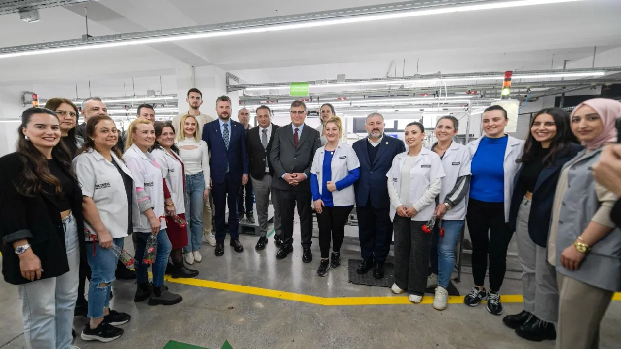 İzmir Büyükşehir Belediye Başkanı Dr. Cemil Tugay, 8 Mart Dünya Emekçi Kadınlar Günü öncesi Buca Ege Organize Sanayi Bölgesi’nde (BEGOS) çalışanlarının yüzde 85’i kadınlardan oluşan bir fabrikayı ziyaret etti. Kadın işçilerle sohbet eden Başkan Dr. Cemil Tugay, “Kadınlar iş hayatına, sosyal yaşantıya katılmadan bir ülke kalkınamaz ve güçlenemez. Sizler bizim için çok değerlisiniz, talep ettiğiniz her türlü konu için çalışacağız. Sorunları beraber çözeceğiz” dedi.İZMİR (İGFA) - İzmir Büyükşehir Belediye Başkanı Dr. Cemil Tugay, CHP İzmir İl Başkanlığı’nın 8 Mart Dünya Emekçi Kadınlar Günü programı kapsamında Buca’da kadın işçilerle bir araya geldi. Çalışanlarının yüzde 85’i kadın olan Narkonteks Tekstil AŞ’yi ziyaret eden Başkan Dr. Cemil Tugay, üretim yapan kadın işçilere karanfil dağıttı ve birlikte yemek yedi. Başkan Tugay’a CHP İzmir İl Başkanı Şenol Aslanoğlu, Buca Belediye Başkanı Görkem Duman, CHP Kadın Kolları üyeleri de eşlik etti. Narkonteks Tekstil AŞ Yönetim Kurulu Başkanı ve Buca Ege Organize Sanayi Bölgesi Yönetim Kurulu Başkanı Toygar Narbay, Yönetim Kurulu Başkan Yardımcısı Tolga Narbay ve yönetim kurulu üyeleri Tugay’a üretimlerine ilişkin sunum yaptı.