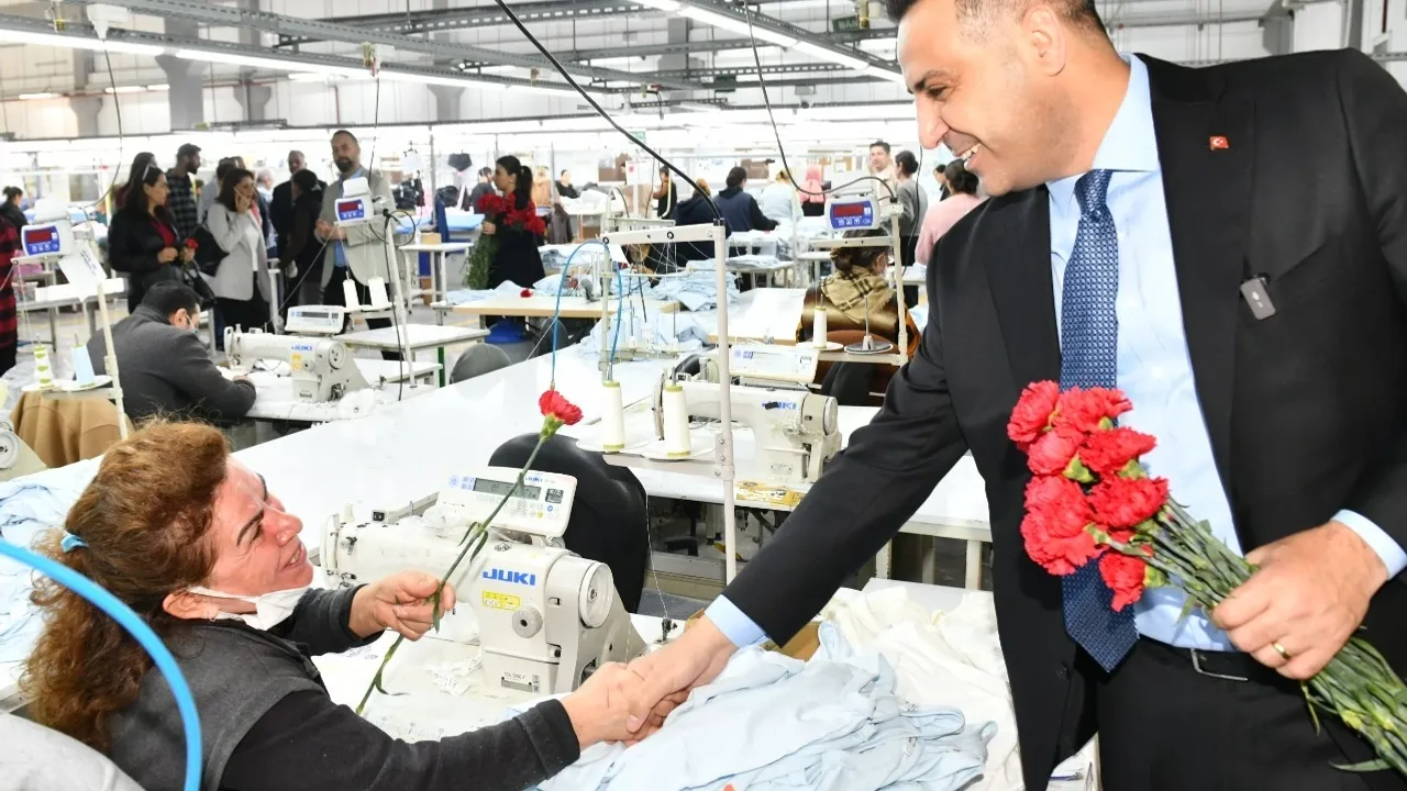 Başkan Yıldız, Atatürk Organize Sanayi Bölgesi’nde üç ayrı fabrikayı ziyaret ederek çalışan kadınlarla bir araya geldi. Başkan Yıldız, her birine anlamlı bir sürpriz yaparak karanfil hediye etti. Başkan Yıldız, toplumsal cinsiyet eşitliğinin önemine dikkat çektiği sohbetlerde, kadınların çalışma hayatında karşılaştıkları zorlukların çözümü için birlikte hareket etmenin gerekliliğini vurguladı. Samimi bir atmosferde gerçekleşen ziyaretler sırasında Yıldız, "Kadınlar, toplumumuzun temel taşıdır ve onların güçlü olması, toplumun güçlü olmasıdır” dedi
