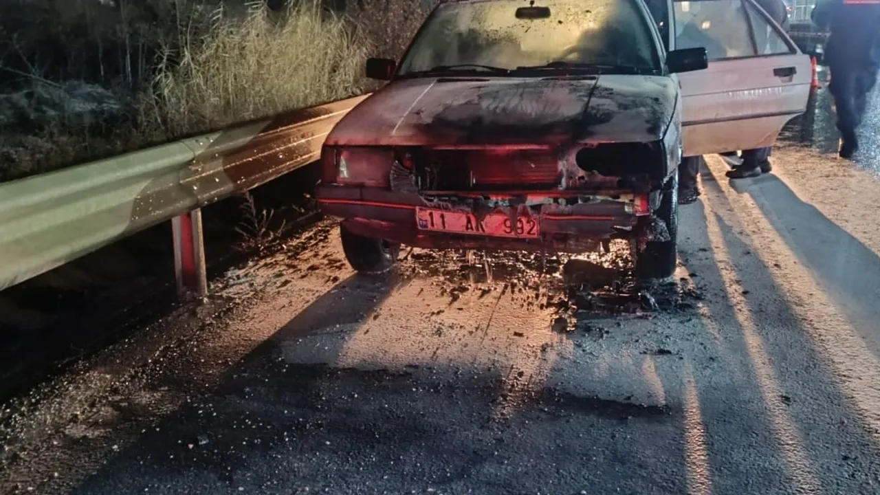 Alınan bilgilere göre İsmail K. (69) idaresindeki 11 XX 992 plakalı otomobil, Pazaryeri Kavşağında yolculuk esnasında elektrik arızası nedeniyle aniden alev aldı. Kısa sürede büyüyen yangın, çevredeki sürücüler tarafından fark edilerek durumu yetkililere bildirildi. İhbar üzerine olay yerine Jandarama ve itfaiye ekipleri sevk edildi. Ekiplerin hızlı ve etkili müdahaleyle yangını kontrol altına alarak söndürdü. Yangın sırasında araçta maddi hasar meydana gelirken, olayda herhangi bir yaralanma ya da can kaybının yaşanmaması olası bir facianın önüne geçti.