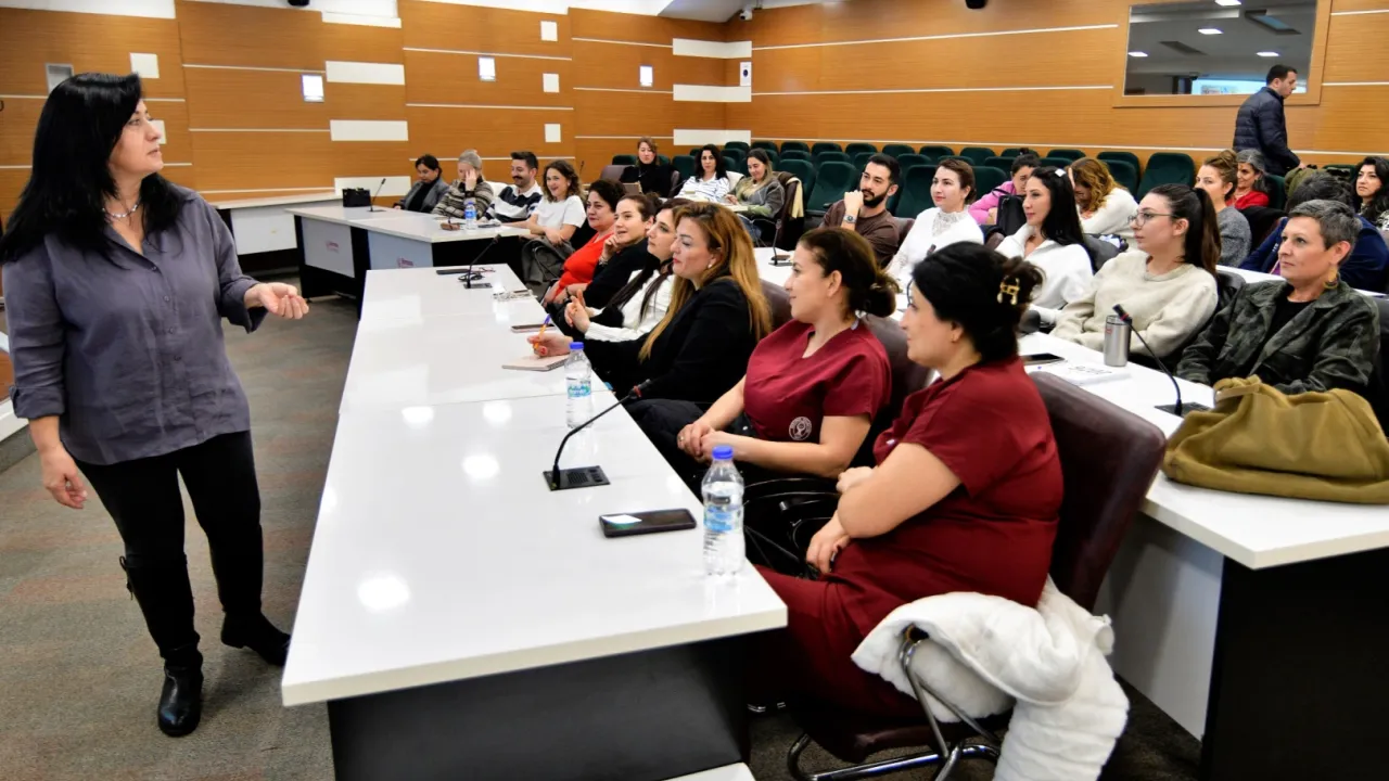 İZMİR (İGFA) -İzmir Kadın Dayanışma Derneği'nden Seher Gündoğan tarafından verilern eğitimde, Gündoğan, toplumsal cinsiyet eşitliğinin yalnızca kadınların değil, tüm toplumun yaşam kalitesini yükselten temel bir insan hakları meselesi olduğuna dikkat çekti.