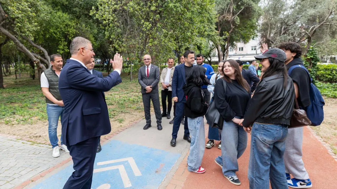İzmir Büyükşehir Belediye Başkanı Dr. Cemil Tugay, Buca’da sahaya inerek çalışmaları yerinde inceledi. Üçkuyular Meydan’daki trafik sıkışıklığı için talimat veren Başkan Tugay, Hasanağa Bahçesi ve Fırat Yılmaz Çakıroğlu Parkı’ndaki yenilemeyi inceledi.İZMİR (İGFA) - İzmir Büyükşehir Belediye Başkanı Dr. Cemil Tugay, Buca’da sahaya inerek İzmir Büyükşehir Belediyesi’nin çalışmalarını yerinde inceledi.