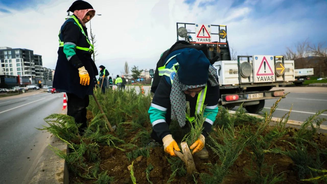 Bursa Büyükşehir Belediyesi, cadde ve bulvarlardaki refüjlerde yaptığı peyzaj düzenlemeleriyle Bursa'nın yeşil kimliğini güçlendiriyor.
