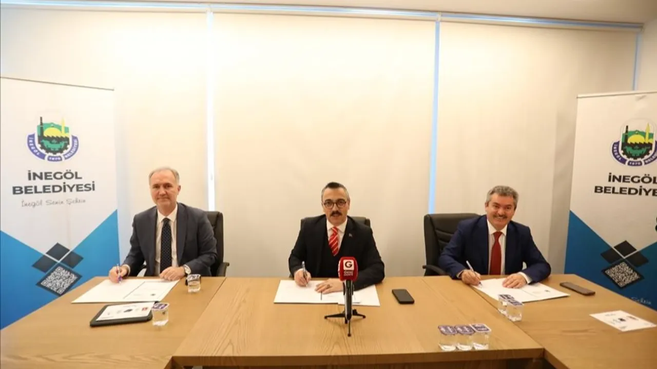 Bursa İnegöl Belediyesi ve İlçe Milli Eğitim Müdürlüğü, Kaymakamlık uhdesinde öğrencilere yönelik; akademik, sosyal ve kültürel gelişimlerini desteklemek amacıyla düzenlenecek çeşitli yarışmalar için Ortak Hizmet Projesi iş birliği protokolü imzalandı.BURSA (İGFA) -Bursa İnegöl Belediyesi ve İlçe Milli Eğitim Müdürlüğü, Kaymakamlık uhdesinde öğrencilere yönelik yapılacak çeşitli yarışma ve etkinlikler için Ortak Hizmet Projesi iş birliği protokolü imzaladı. İlçedeki öğrencilerin akademik, sosyal ve kültürel gelişimlerini desteklemek amacıyla yapılacak yarışmaları kapsayan protokol, bugün düzenlenen törenle imza altına alındı. İmza törenine Kaymakam Eren Arslan, Belediye Başkanı Alper Taban ve Milli Eğitim Müdürü Halil İbrahim Zengin Katıldı.