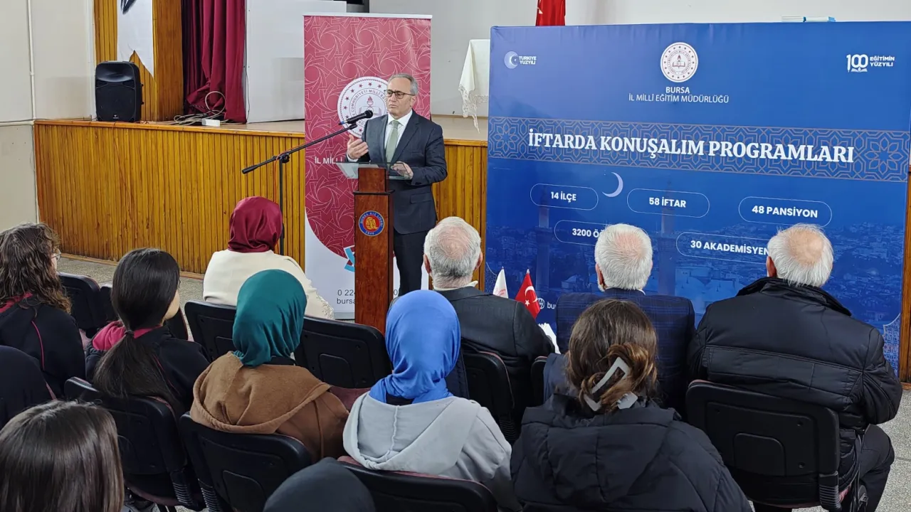 Bursa İl Millî Eğitim Müdürlüğü tarafından, Millî Eğitim Bakanlığı Destek Hizmetleri Genel Müdürlüğünün yazısı doğrultusunda düzenlenen "İftarda Buluşalım, İftarda Konuşalım" söyleşi etkinliği, Bursa Kız Lisesinde gerçekleştirildi.BURSA (İGFA) - Ramazan’ın manevi iklimine uygun şekilde düzenlenen programda, Bursa’nın milli ve manevi değerleri üzerine sohbetler gerçekleştirildi.