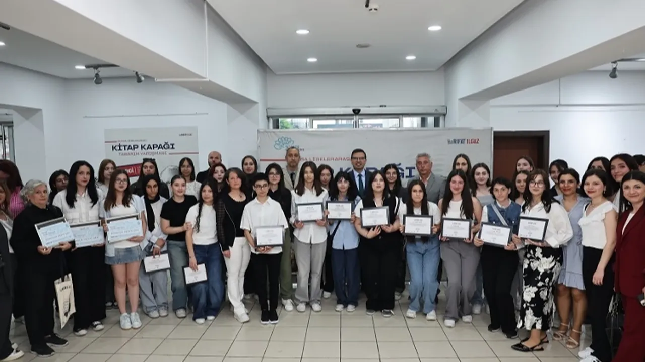 Bursa Nilüfer Belediyesi’nin, Yılın Yazarı Rıfat Ilgaz anısına düzenlediği “Liselerarası Kitap Kapağı Tasarım Yarışması”nda kazananlar belli oldu. 12 okuldan 375 tasarımın katıldığı yarışmada, Zeki Müren Güzel Sanatlar Lisesi öğrencisi Şevval Demirtaş birincilik ödülünü aldı.BURSA (İGFA) - Bursa Nilüfer Belediyesi Kütüphane Müdürlüğü tarafından Yılın Yazarı etkinlikleri kapsamında gerçekleştirilen “Liselerarası Kitap Kapağı Tasarım Yarışması”nda dereceye girenlere ödülleri törenle verildi. Yarışmaya katılan öğrenciler önce Rıfat Ilgaz’ın “Halime Kaptan” isimli kitabını okudu ardından da bu kitap için kapak tasarımı yaptı.