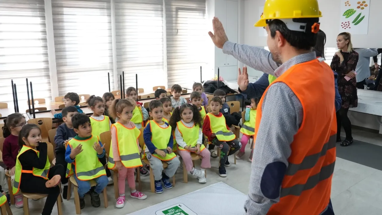 Candan Genceroğlu Kreş ve Gündüz Bakım Evi'nde gerçekleşen programın ilk aşamasında uzmanlar, iş güvenliğinin önemine değindi. Eğitimi büyük dikkatle takip eden minikler, daha sonra koruyucu kask, yelek, gözlük gibi donanımları uygulamalı olarak deneyimledi.