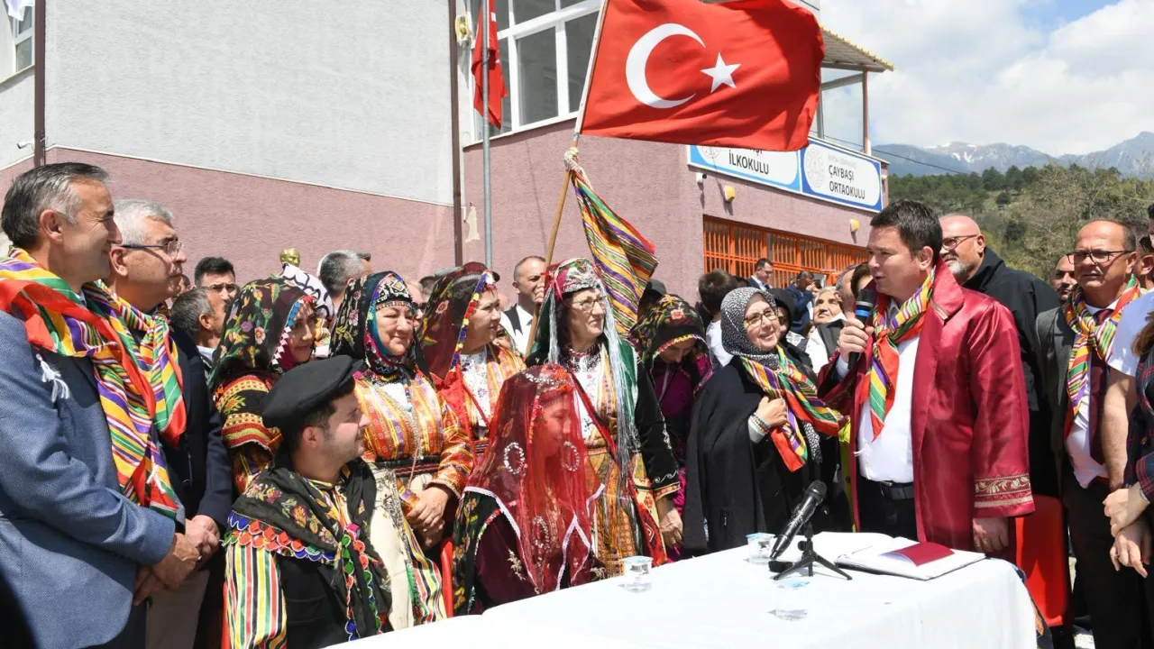Köy meydanında düzenlenen törende, gelin ve damadın nikahlarını kıyan Başkan Aydın, çifte mutluluklar dilerken, nikah cüzdanını geline teslim etti.