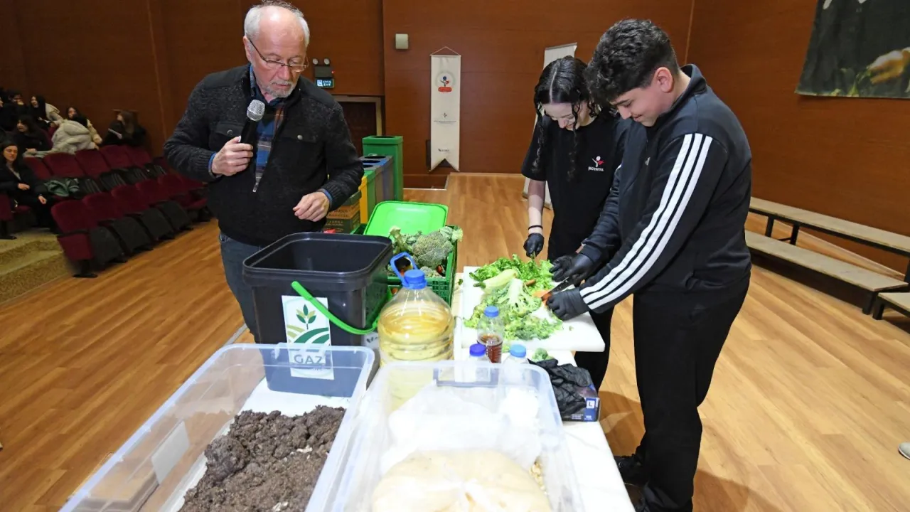 Programda konuşan Rüveyşa Burça Sütcüoğlu, doğal kaynakların sınırlı olduğuna dikkat çekerek artan nüfusla birlikte atık miktarının da hızla yükseldiğini belirtti. Bunun yanı sıra seminer kapsamında Sütcüoğlu; atıkların kaynağında ayrıştırılmasının çevreye katkıları, gıda israfının önlenmesinin ekonomik ve ekolojik önemi ile sürdürülebilir tüketim alışkanlıklarının günlük yaşama nasıl entegre edilebileceği konularında öğrencilere detaylı bilgiler verdi.