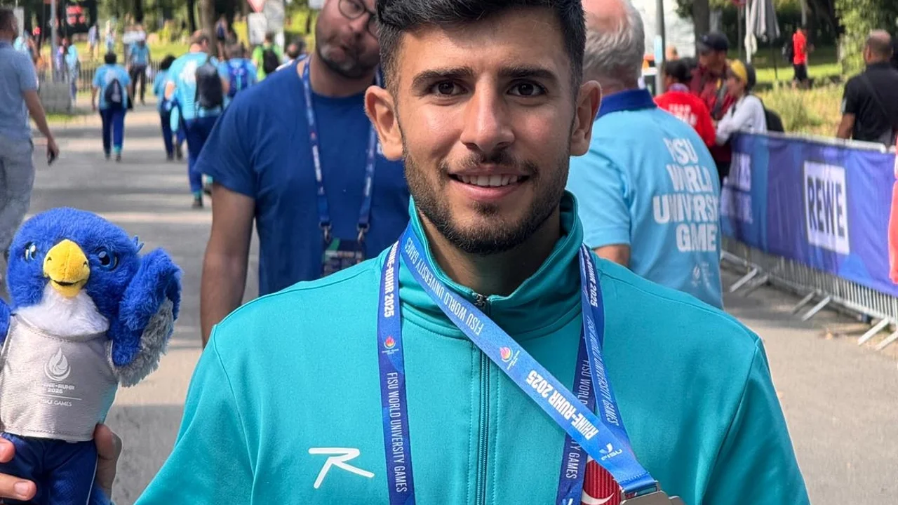 Bursa'da Osmangazi Belediyespor Kulübü’nün milli sporcusu Azad Demirtaş, Almanya’da düzenlenen FISU 2025 Dünya Üniversite Yaz Oyunları’nda büyük bir başarıya imza attı. Türkiye Yarı Maraton Erkek Takımı’nda yer alan Demirtaş, takım arkadaşları ile birlikte gümüş madalyanın sahibi oldu.BURSA (İGFA) - Almanya’nın ev sahipliğinde düzenlenen FISU 2025 Dünya Üniversite Yaz Oyunları, 100’den fazla ülke ve 10 binin üzerinde üniversite öğrencisinin katılımıyla gerçekleşti.