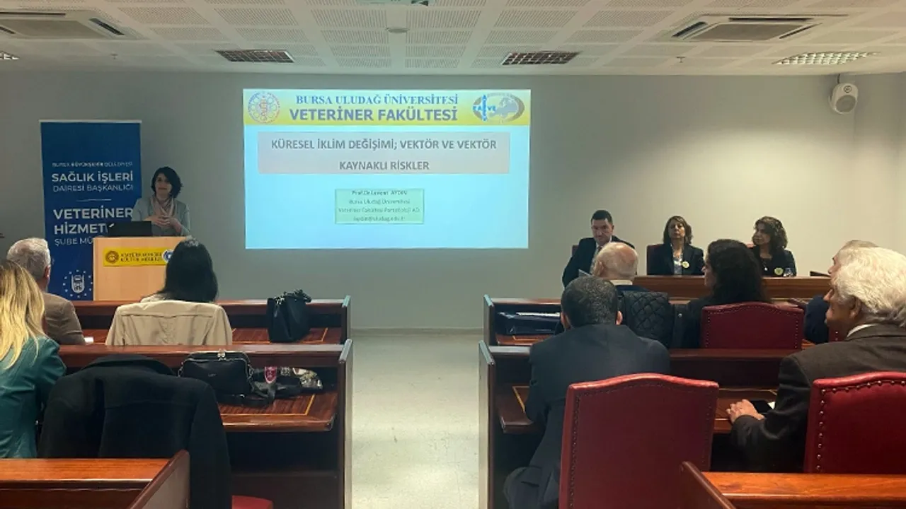 Bursa Büyükşehir Belediyesi, iklim değişikliği sebebiyle artış gösteren vektörel kaynaklı hastalıklara dikkat çekmek ve alınabilecek önlemler hakkında bilgi vermek amacıyla ‘İklim Krizi Kaynaklı Vektörel Hastalıklar Paneli’ düzenledi.BURSA (İGFA) - Bursa Büyükşehir Belediyesi Veteriner İşleri Dairesi Başkanlığı Veteriner Hizmetleri Şube Müdürlüğü’nün ev sahipliğinde, Bursa Dişhekimleri Odası, Bursa Eczacı Odası, Bursa Tabip Odası ve Bursa Veteriner Hekimler Odası iş birliği ile ‘İklim Krizi Kaynaklı Vektörel Hastalıklar Paneli’ gerçekleştirildi. Atatürk Kültür Merkezi Merinos Yerleşkesi’ndeki panele, Veteriner Hizmetleri Şube Müdürü Özlem Kartal, Bursa Veteriner Hekimler Odası Başkanı Melike Baysal, Bursa Uludağ Üniversitesi’nden Prof. Dr. Levent Aydın, Prof. Dr. Emel Yılmaz, akademik odaların temsilcileri ve vatandaşlar katıldı.