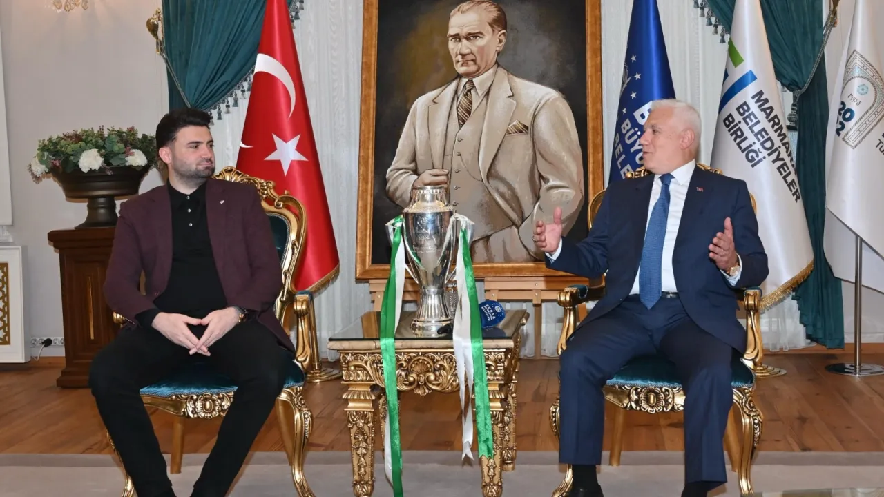 Bursa Büyükşehir Belediye Başkanı Mustafa Bozbey, şampiyonluk kupasıyla kendisini ziyaret eden Bursaspor Başkanı Enes Çelik ve yönetim kurulu üyelerini ağırladı.