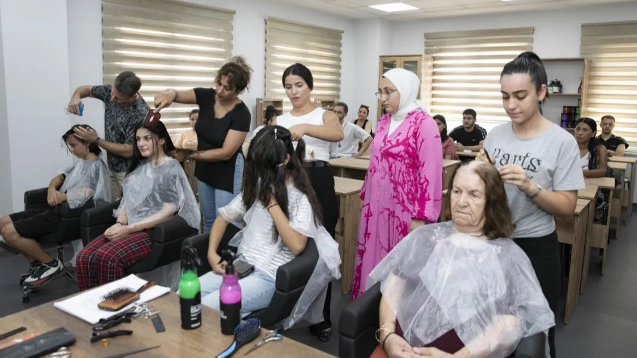 Mersin’de meslek edinmek isteyenleri ve kalifiye eleman arayan sektör temsilcilerini, açtığı birbirinden değerli kurslarla bir araya getiren Mersin Büyükşehir Belediyesi, MERCEK Meslek Edindirme ve Eğitim Merkezleri ile ilgi odağı olmayı sürdürüyor.MERSİN (İGFA) - Sektörlerin ihtiyaç duyduğu mesleklerde eğitimler düzenleyerek istihdamın da artmasını sağlayan Sosyal Hizmetler Dairesi Başkanlığı, Halkkent MERCEK’te açtığı ‘Kuaförlük Kursu’ ile saç tasarımı tutkunlarına hizmet veriyor.