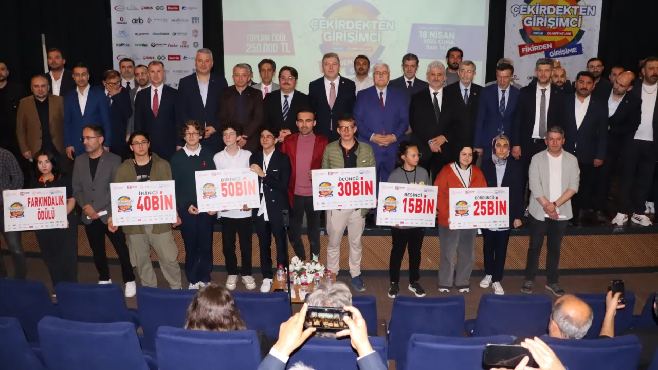 Sakarya İl Millî Eğitim Müdürlüğü ile Girişimci İş Adamları Vakfı Sakarya Şubesi iş birliğiyle yürütülen “Çekirdekten Girişimci Proje Olimpiyatları” nın sergisi ve ödül töreni, Sakarya AK Parti Milletvekili Ertuğrul Kocacık, Serdivan Belediye Başkanı Osman Çelik, Sakarya İl Millî Eğitim Müdürü Coşkun Bakırtaş, Girişimci İş Adamları Vakfı Genel Başkanı Mehmet Koç, GİV Sakarya Şube Başkanı Baki Demir, protokol üyeleri, akademisyenler, sivil toplum kuruluşu başkan ve temsilcileri, öğretmenler, öğrenciler ve ziyaretçilerin katılımıyla Şehit Erol Olçok Konferans Salonu’nda gerçekleştirildi.SAKARYA (İGFA) - Tören öncesinde ilkokul, ortaokul ve lise düzeyinde hazırlanan finalist toplam 20 proje, sergi alanında ziyaretçilerin beğenisine sunuldu. Öğrencilerin projelerinde çözüm odaklı yaklaşımı, toplumsal farkındalık oluşturma çabası ve teknolojiyi etkin kullanmaları dikkatleri çekti. 20 finalist öğrencinin ortaya koydukları ürünleri tanıttıkları proje sergisi, davetlileri yoğun ilgi gösterdi.