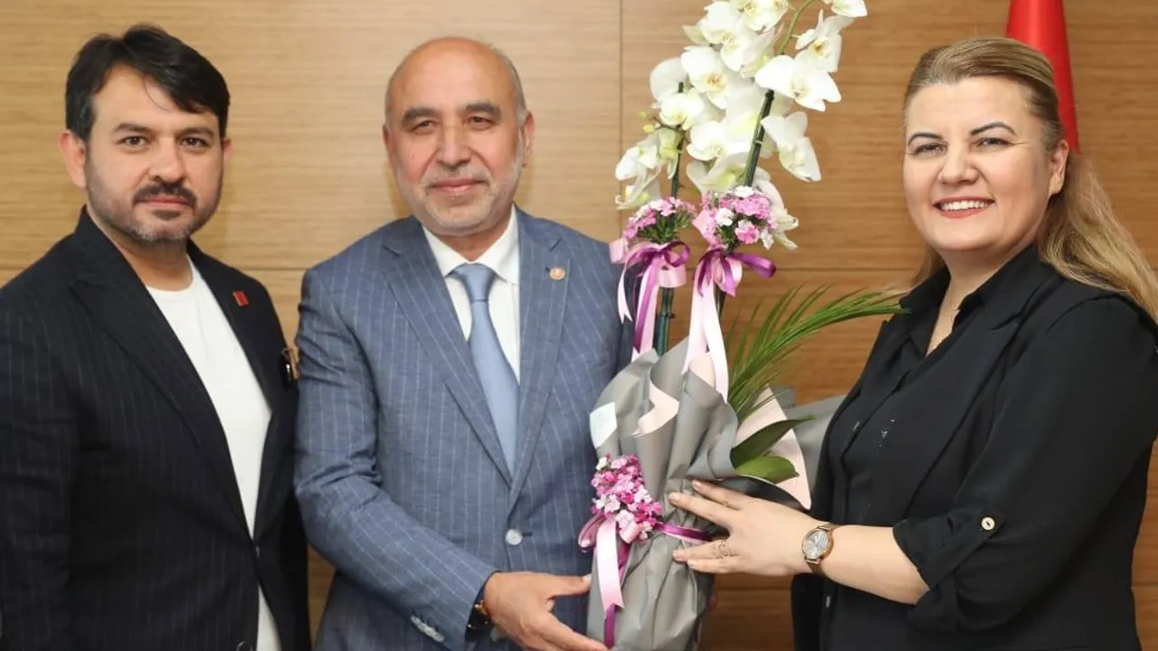Kocaeli İzmit Belediye Başkanı Fatma Kaplan Hürriyet, Saadet Partisi Kocaeli İl Başkanı Recep Sarıdoğan’a hayırlı olsun ziyaretinde bulundu.KOCAELİ (İGFA) - Kocaeli İzmit Belediye Başkanı Fatma Kaplan Hürriyet, geçtiğimiz aylarda göreve gelen Saadet Partisi Kocaeli İl Başkanı Recep Sarıdoğan’a hayırlı olsun ziyaretinde bulundu. Başkan Hürriyet’e ziyarette, CHP İzmit İlçe Başkanı Gökhan Ercan, ilçe yöneticileri ve İzmit Belediyesi meclis üyeleri eşlik etti. Samimi bir atmosferde gerçekleşen buluşmada, kentle ilgili karşılıklı görüş alışverişinde bulunuldu.