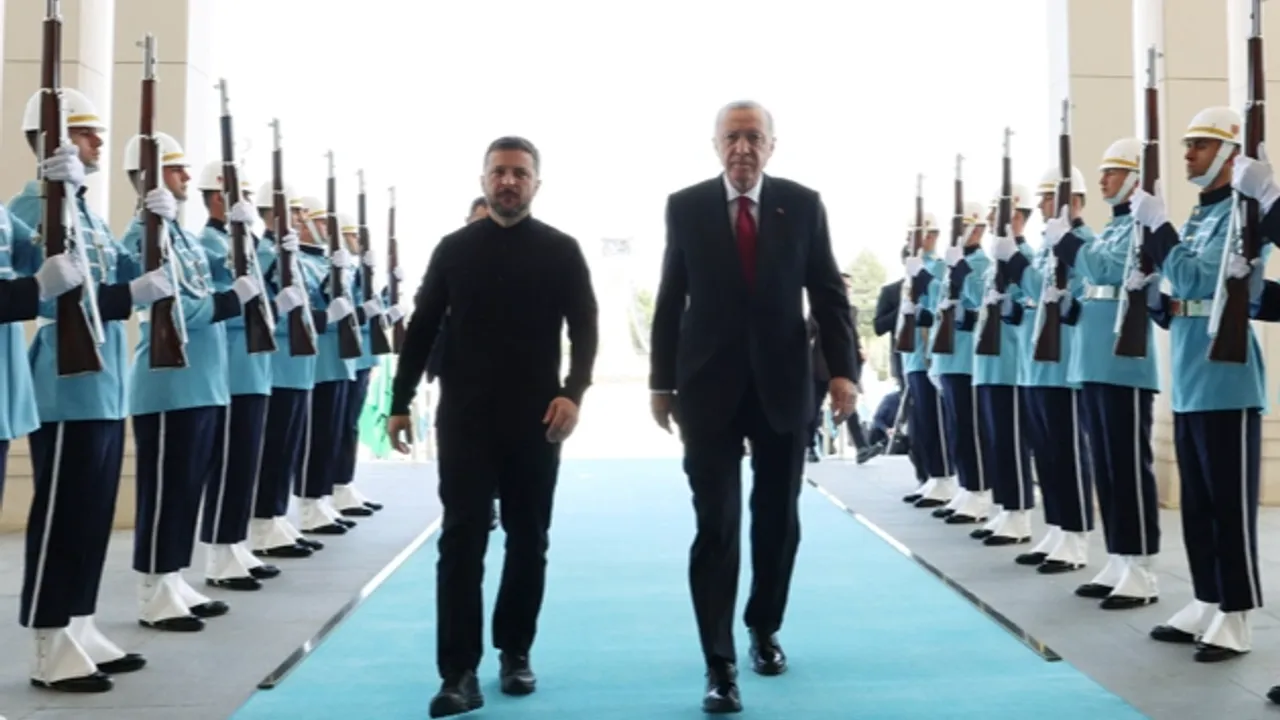 Türkiye ve Ukrayna bayrakları önünde basın mensuplarına poz veren ve heyetlerini takdim eden Cumhurbaşkanı Erdoğan ve Ukrayna Devlet Başkanı Zelenskiy, daha sonra baş başa ve heyetler arası görüşmelerini gerçekleştirmek üzere Cumhurbaşkanlığı Külliyesine geçti.