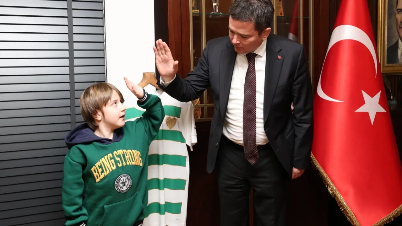 Bursa'da Osmangazi Belediye Başkanı Erkan Aydın, DMD (Duchenne Musküler Distrofi) Hastası 8 yaşındaki Yağız Efe Erim'i makamında ağırlayarak yardım kampanyasına destek verdi. Başkan Aydın, 'Tüm belediye başkanlarını, siyasileri, Bursa halkını ve Bursaspor camiasını Yağız Efe'ye sahip çıkmaya davet ediyorum' dedi.