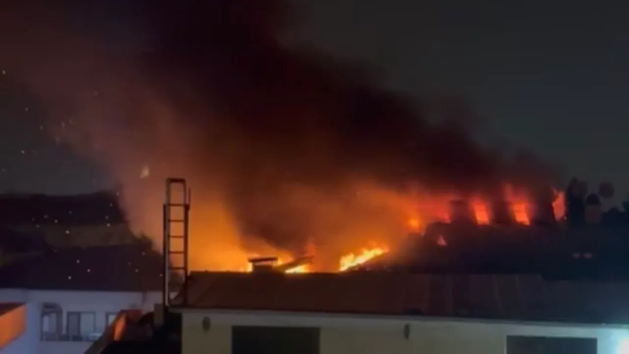 İhbar üzerine bölgeye çok sayıda itfaiye, sağlık ve polis ekibi sevk edilirken, ekipler, çatı bölümünü saran alevlere müdahale ederek yangını kontrol altına aldı.