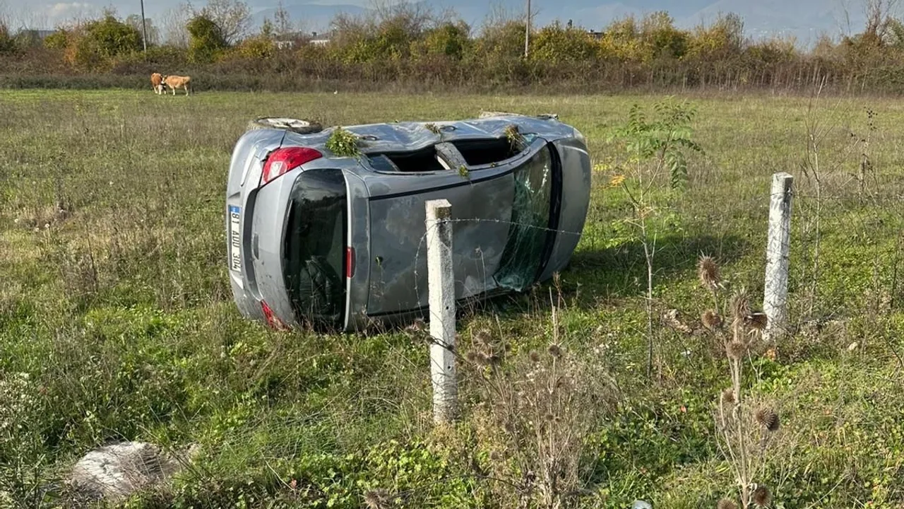 Düzce'de Çamköy yakınlarında kontrolü kaybedip boş araziye devrilen otomobilde yaralanan sürücü ilk müdahale sonrası Düzce Atatürk Devlet Hastanesi'ne sevk edilerek, tedavi altına alındı.