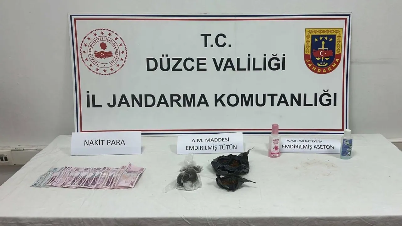 Düzce’nin Gümüşova ilçesine bağlı Çaybükü Köyü’nde düzenlenen uyuşturucu operasyonunda, ev ve üst aramalarında uyuşturucu madde ile nakit para ele geçirildi. Operasyonda 2 kişi gözaltına alındı.Sefer DEMİR / DÜZCE (İGFA) - Düzce İl Emniyet Müdürlüğü Kaçakçılık ve Organize Suçlarla Mücadele Şube Müdürlüğü (KOM) ekipleri, Gümüşova’nın Çaybükü Köyü’nde uyuşturucuyla mücadele kapsamında bir operasyon gerçekleştirdi.