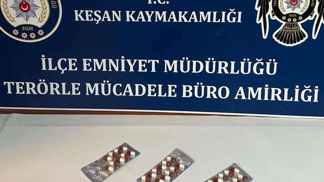 T.Ç. isimli şahsın Paşayiğit Caddesi üzerinde yapılan aramasında 0,44 gram metanfetamin bulundu. Şahsın ayrıca Gökçeada Sulh Ceza Hakimliğince 'Dolandırıcılık' ve Keşan İlamat ve İnfaz Bürosunca 'Taksirle Bir Kişinin Yaralanmasına Neden Olma' suçlarından iki ayrı aranma kaydı (44 ay 30 gün hapis cezası) bulunduğu tespit edildi.