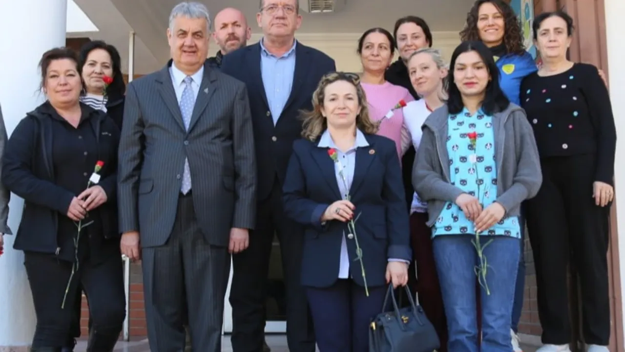 Edremit Belediye Başkanı Mehmet Ertaş, 8 Mart Dünya Emekçi Kadınlar Günü dolayısıyla belediye hizmet binalarındaki kadın personeli tebrik etti. Başkan Ertaş, kadın çalışanlara kolaylıklar dileyerek karanfil takdim etti.BALIKESİR (İGFA) - Başkan Mehmet Ertaş, 8 Mart Dünya Emekçi Kadınlar Günü’nde, belediye hizmet binalarındaki ve iştiraklerindeki kadın personelin yanı sıra beldelerde görev yapan personelleri de kutladı. Başkan Yardımcıları Cavit Cebeci, Coşkun Taşkın ve Metin Tunçer ile Belediye Meclis Üyeleri Nevin Sayman, Necmiye Simliova ve Güneş Durgut, kadın personelleri ve kadın muhtarları ziyaret ederek kadınlar gününü kutladı.