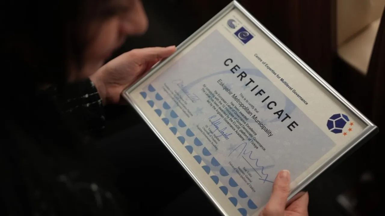 ESKİŞEHİR (İGFA) - Eskişehir Büyükşehir Belediyesi, iyi yönetişim alanındaki kararlı çalışmalarıyla hem ulusal hem de uluslararası düzeyde örnek gösterilen belediyeler arasındaki yerini güçlendirmeye devam ediyor. ELoGE 2025 Ödül Töreni, Ankara'da Türkiye Belediyeler Birliği'nin ev sahipliğinde gerçekleştirildi. Törende, Avrupa Yönetişim Mükemmelliği Markası'nı bir yıl süreyle kullanma hakkı kazanan belediyelere ödülleri takdim edildi.