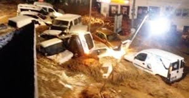 Akşam saatlerinde ilçe merkezinde etkili olan sağanak yağış sele dönüştü. Şakir Caddesi ile Dere Sokak'taki 20'ye yakın araç sel suyuyla sürüklendi. Sel suyunun verdiği zararla cadde ve sokaklar kullanılmaz hale geldi. Bir elektrik direğinin devrilmesi sonucu akıma kapılan sokak köpeği öldü. Sel suyunun çekilmesinden sonra ortaya ortaya çıkan tabloyu gören vatandaşlar gözlerine inanamadı.
