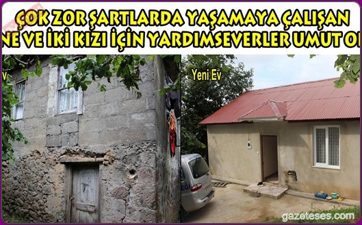 Oldukça zor şartlarda yaşamaya çalışan anne ve iki kızı için yardımseverler umut oldular. Tamamı yardımseverlerin yardımlarıyla birlikte yapılan yeni evin tüm eşyaları da tamamlanarak törenle kendilerine teslim edildi.