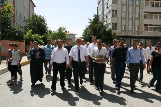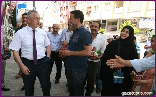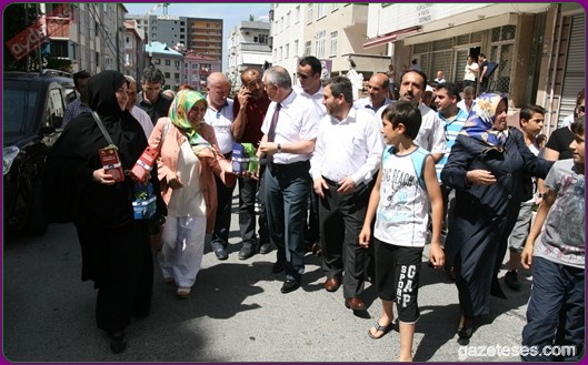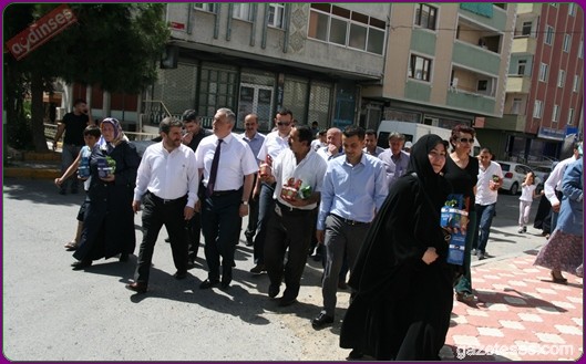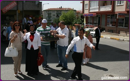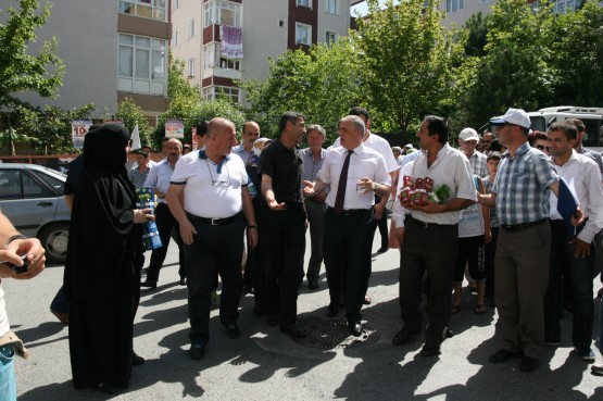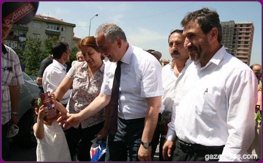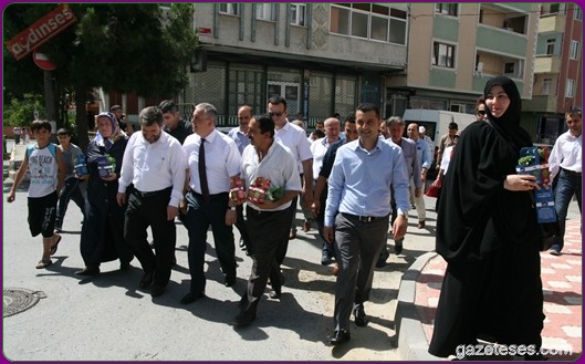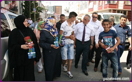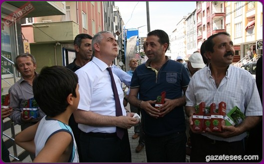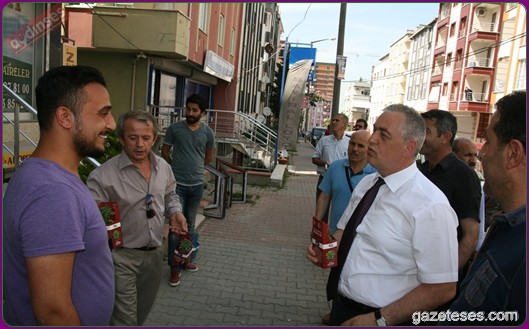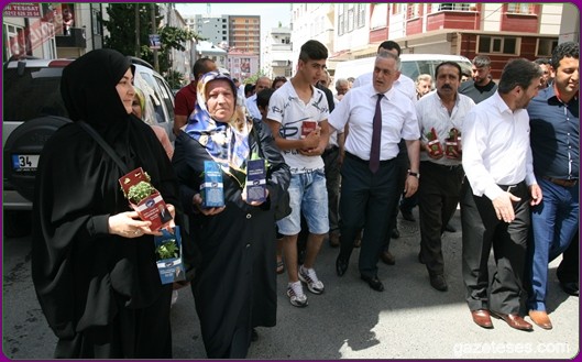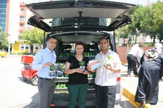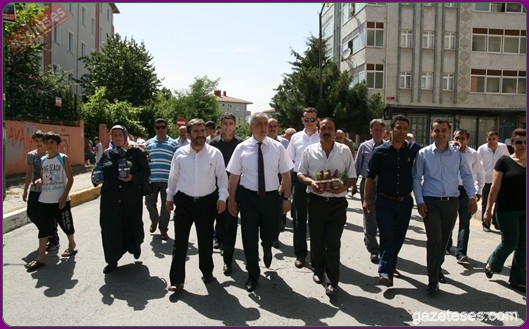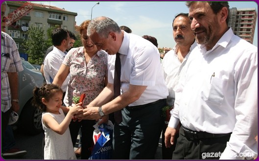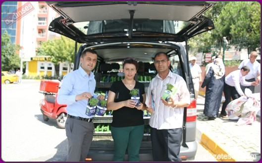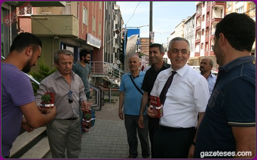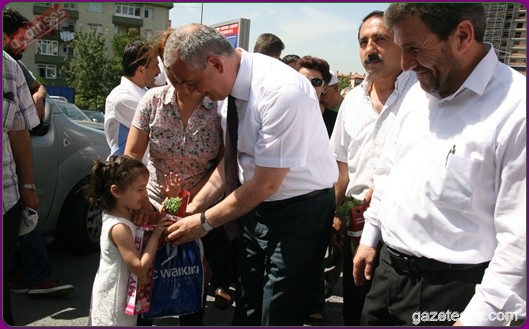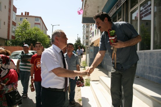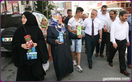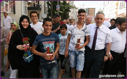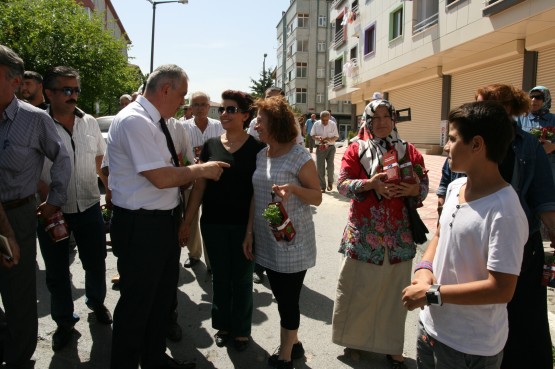 Başkan apartmanlardan aşağıya uzatılan sepetlere saksıları yerleştirdi ve pencere camlarından uzanan Eyüplülere mis gibi kokan fesleğenleri hediye etti.