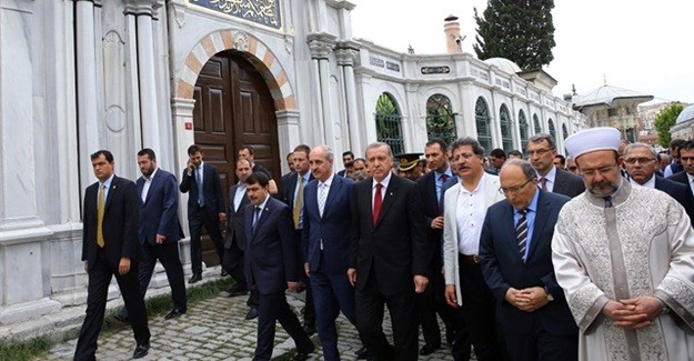 Cumhurbaşkanı Recep Tayyip Erdoğan restorasyonu tamamlanan Eyüp Sultan Türbesi'nin ziyarete açılma törenine katıldı.