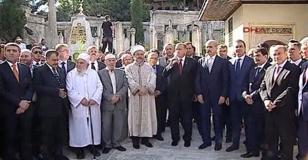 Törende bir konuşma yapan Cumhurbaşkanı Erdoğan, uzun zamandır devam eden Eyüp Sultan Türbesi'nin tadilatının bittiğini belirterek, "Bugün resmen artık açılışını yapıyoruz. Gerçekten restorasyon esnasında içerisini gezip gördüğüm zaman maalesef çok ciddi sıkıntıların yaşandığını gördüm" dedi.