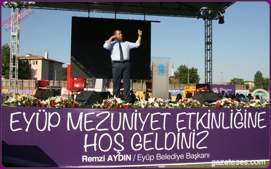 Sevgili öğrencilerimiz bir eğitim öğretim yılının daha sonuna gelmiş bulunuyoruz hepinize başarılar dilerim. Ülkemizin geleceğinin teminatı olan siz genler hak ettiğiniz makama ve mevkiye gelebilmek için çok çalışmalısınız. Biz Eyüp Belediyesi olarak okullarımıza her türlü desteği verermeye hazırız. Bizim içim eğitim ve kültür çok önemlidir, geleceğimizin teminatıdır. Derceye giren öğrencilerimize teşekkür ederim. diyerek sölerini tamamladı.