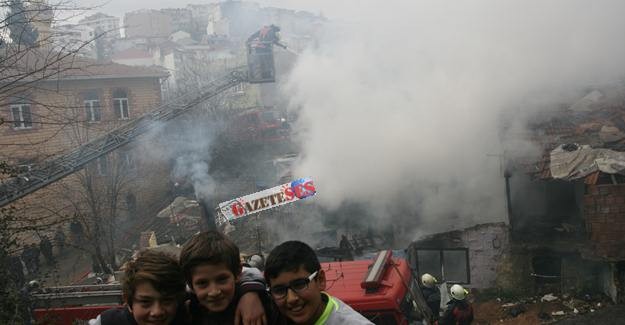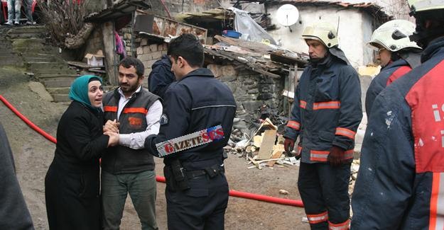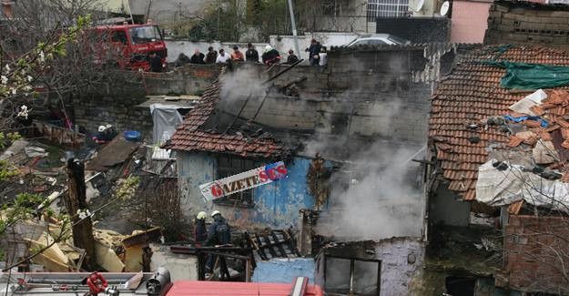 Evde iki çocuk bulunduğu babalarının işte olduğu annelerinin ise okula ablalarını götürdüğü evde çocuklar bulunduğu sırada çıkan yangını gören anne fenalık geçirdi.