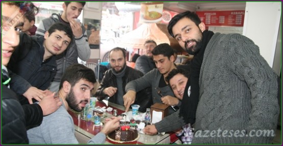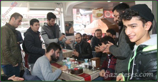 Yeşilpınarsporlu futbocular Asker'e gidecel olan oyuncu arkadaşları Oğuzhan için pasta kestiler.