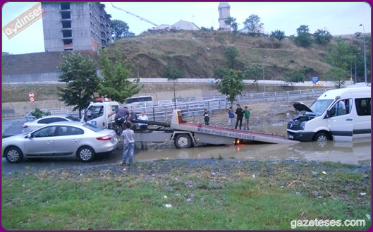 Alt yapı yetersizliği ve larların temizlenmemesi nedeniyle oluşan sel suları araçların hareketini kesti. Araçlat çekici yardımı ile kurtarıldılar.