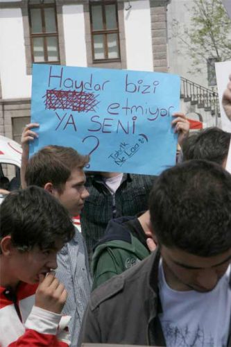 *HAYDAR'a dokunma! (Haydar Dümen'in fotoğrafının üzerine yazılan yazı)