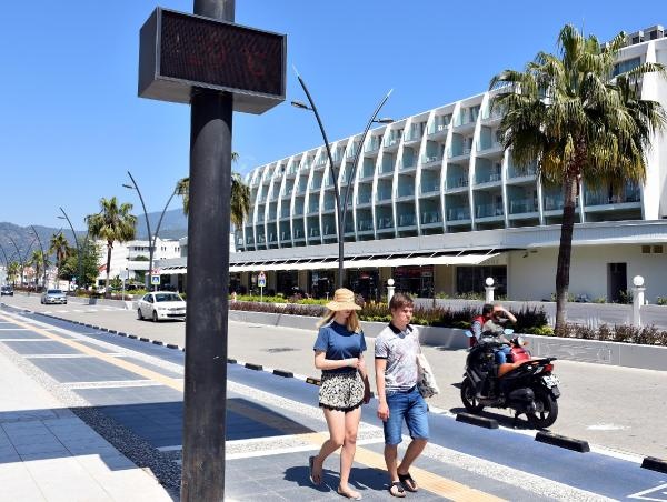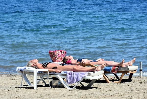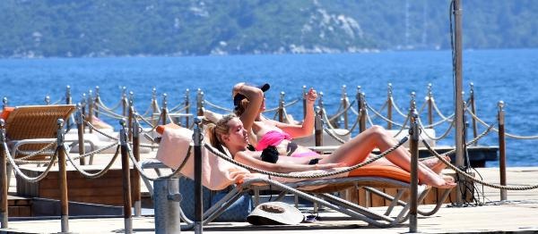 MUĞLA'nın Marmaris İlçesi'nde bir süredir etkisini gösteren soğuk hava, yerini sıcağa bırakınca, turistler ve vatandaşlar sahilde denizin keyfini çıkardı.