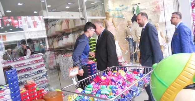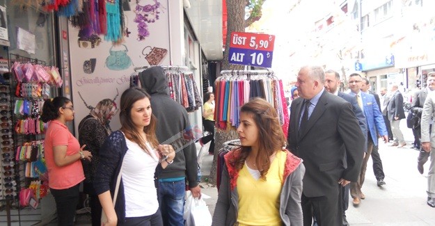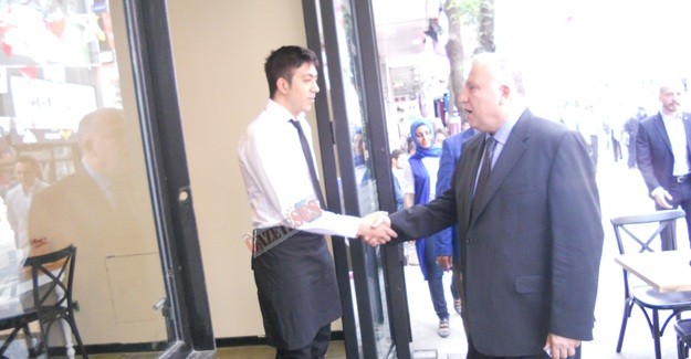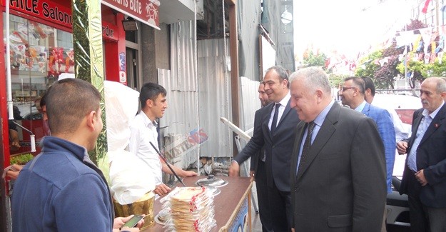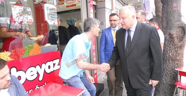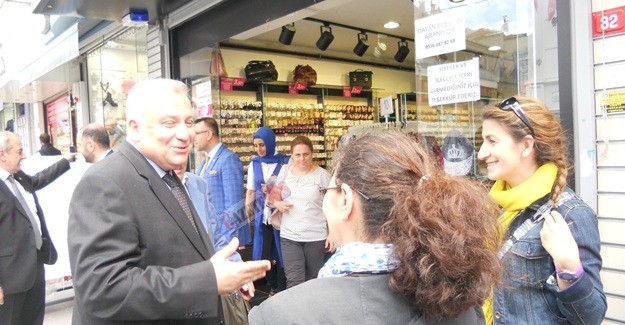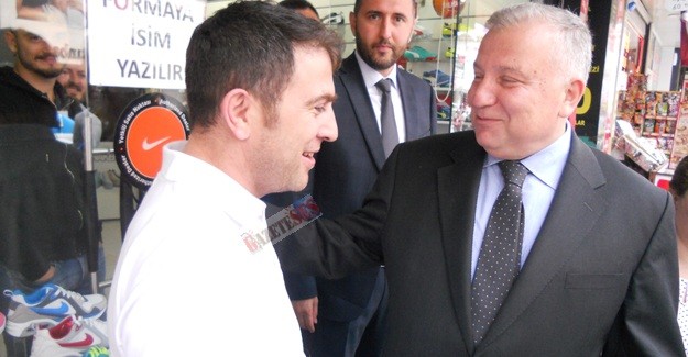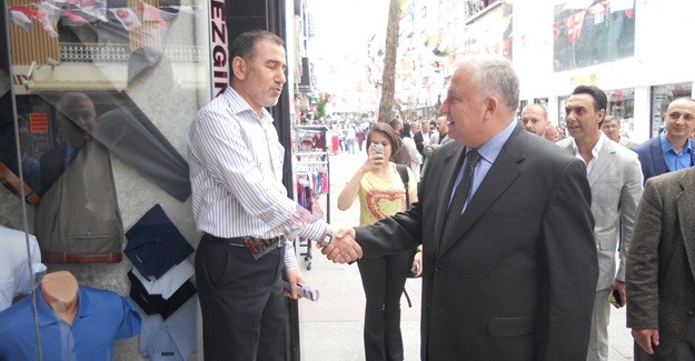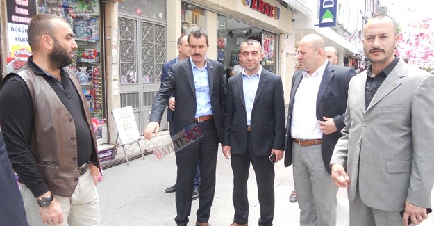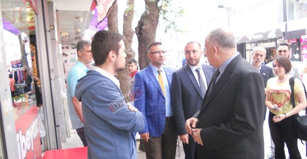 Esnafları ziyaret eden adaylar esnaflardan 7 haziran seçimi için oy istedilr.
