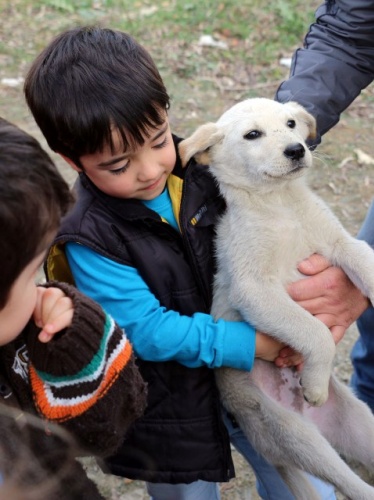Sokak hayvanlarını getirdikleri kuru mamalarla besleyen minikler, daha sonra da yavru köpekleri sevdiler. Hem heyecanlı hem de neşeli dakikalar geçiren minik öğrencilerin keyifli halleri anneleri ile öğretmenlerini de mutlu etti.