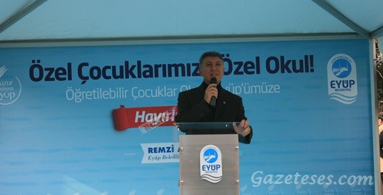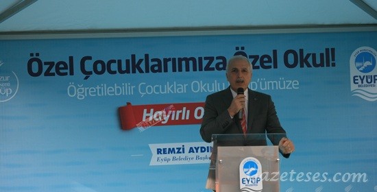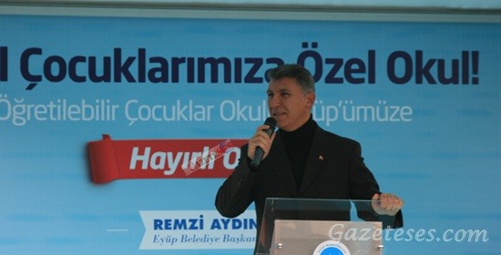 Öğretilebilir Çocuklar Okulu’nun temel atma töreninde bir konuşma yapan Eyüp Belediye Başkanı Remzi Aydın, bu tür okulların önemine dikkat çekerek, “Bugün burada bir hayır adımı atılıyor. Bugün bu hayır için bir araya geldik. Allah hepimizin hayrını kabul etsin. Burada çok güzel bir çalışma yapılacak.