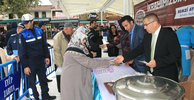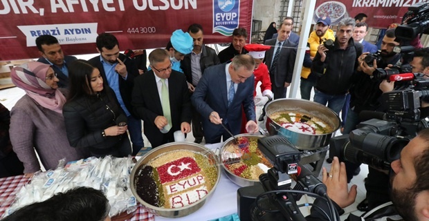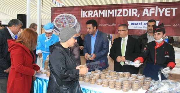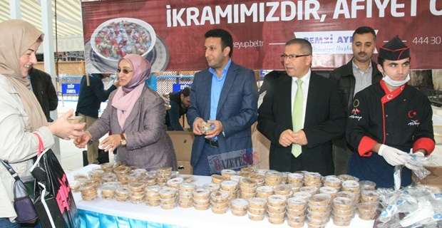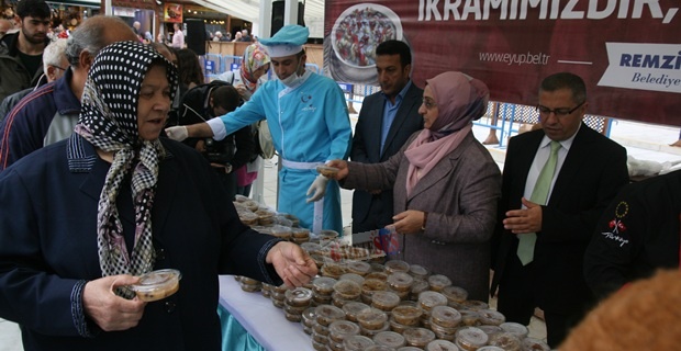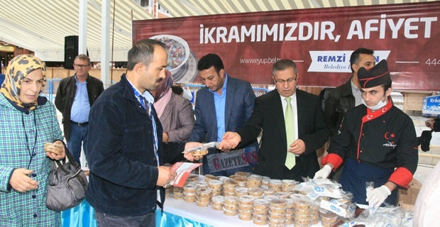 Aşure dağıtımını Eyüp Belediye Başkanı Remzi Aydın ile birlikte Ak Parti İstanbul İl meclis üyesi (İstanbul 3 bölge Milletvekili Adayı Zekiye Çapan ile Ak Parti Eyüp İlçe Kadın Kolları Başkanı Hatice Yücel gerçekleştirdi. Çeşitli sivil toplum kuruluşlarından temsilciler, vatandaşlar, çok sayıda gençler ve öğrencilerin katılımıyla gerçekleştirilen Aşure Gününe Cuma’nın bereketi de eklenince dualar, sevgi, barış ve kardeşlik için yapıldı. Programda vatandaşa kendi elleriyle aşure dağıtan Eyüp Belediye Başkanı Remzi Aydın “Her sene hatırlamak ve hatırlatmak için yaptığımız bu geleneğimizle istedik ki Muharremin onuncu gününde manevi dünyamızla hemhal olalım.