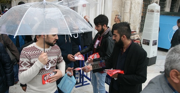 Turistler aşure kazanları gördükten sonra aşure yiyerek fotoğraf çektirdiler. İstanbulluların yoğun ilgi gösterdiği programda vatandaşlar yağmura aldırmadı. Aşuresini alan vatandaşların bir kısmı meydanda yerken bir kısmı da evine götürüp ailesiyle yedi.