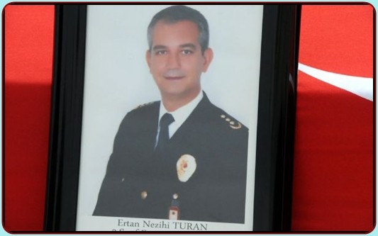 Şehit Emniyet Müdür Yardımcısı Ertan Nezihi Turan'ın Türk bayrağına sarılı cenazesi polis mangasının omuzlarında valilik bahçesine getirildi. Eşinin tabutu önünde gözyaşlarını tutamayan Velda Turan, kızları Katre Çağla ve Zeynep'e sarıldı. Babasının polis şapkasını takarak törene gelen Katre Çağla ve Zeynep Turan, ellerinden düşürmediği babasının fotoğrafına bakarak gözyaşı döktü. Küçük Zeynep'in gözyaşları törene katılanların yüreğini dağladı.
