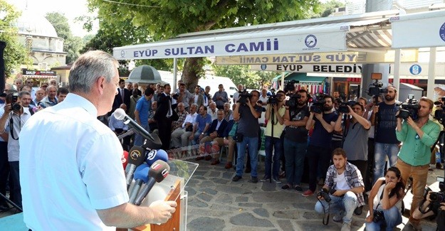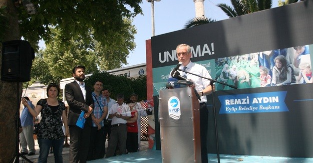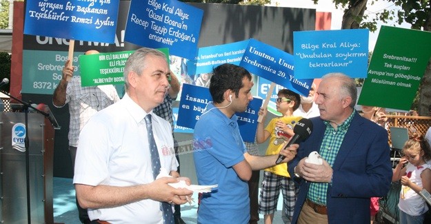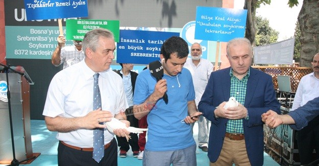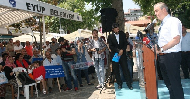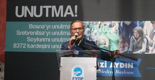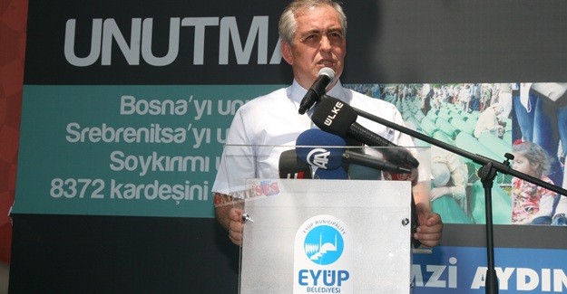 Tam 8 bin 372 Müslüman Sırp vahşetine maruz kalarak hunharca öldürüldü” diye konuştu. İslam dünyasının, Müslümanların artık kan dökülmesini istemediğini belirten Başkan Aydın, “Müslümanlar tüm dünyada ve de kendi coğrafyalarında huzur ve barış içinde yaşamak istiyorlar. Zulüm altındaki Müslümanlar halen var. Doğu Türkistan’da, Filistin’de dünyanın dört bir yanında sadece Müslüman oldukları için zulme maruz kalan, öldürülen insanların feryatlarını duyurmak için buradayız. Dünyanın 4. önemli İslam merkezlerinden biri olarak kabul edilen Ebu Eyyub El Ensari Hazretlerinin manevi huzurundan, sesimizi tüm dünyaya duyurmak için toplandık. Dualarımız bu mübarek Ramazan ayında baskı ve zulüm altındaki Müslüman kardeşlerimizin bir an önce huzura kavuşmaları içindir” dedi.