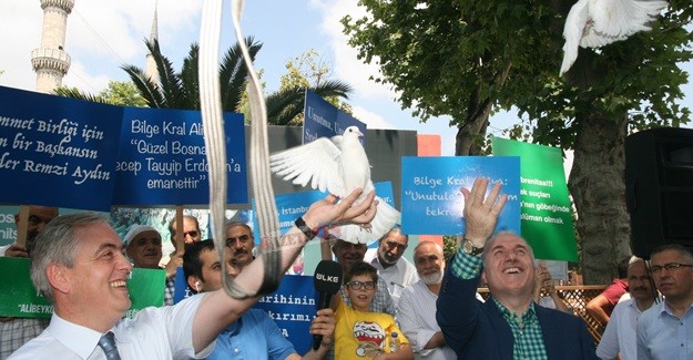 Yapılan konuşmaların ardından programa katılanlar hep birlikte, Sırp vahşetine maruz kalıp öldürülen 8 bin 372 Müslüman ve halen zulüm altındaki Müslümanlar için gökyüzüne beyaz güvercinler bıraktılar.