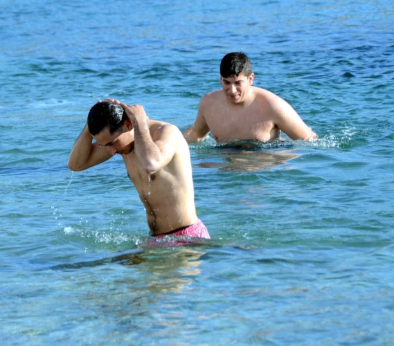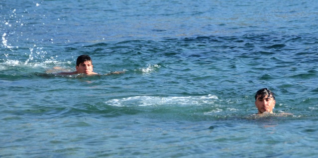MUĞLA'nın Bodrum İlçesi'nde güzel havayı görenler, sahillere akın etti; güneşin keyfini çıkardı. Kumbahçe Sahili'nde ise 2 kişi denizde yüzdü.